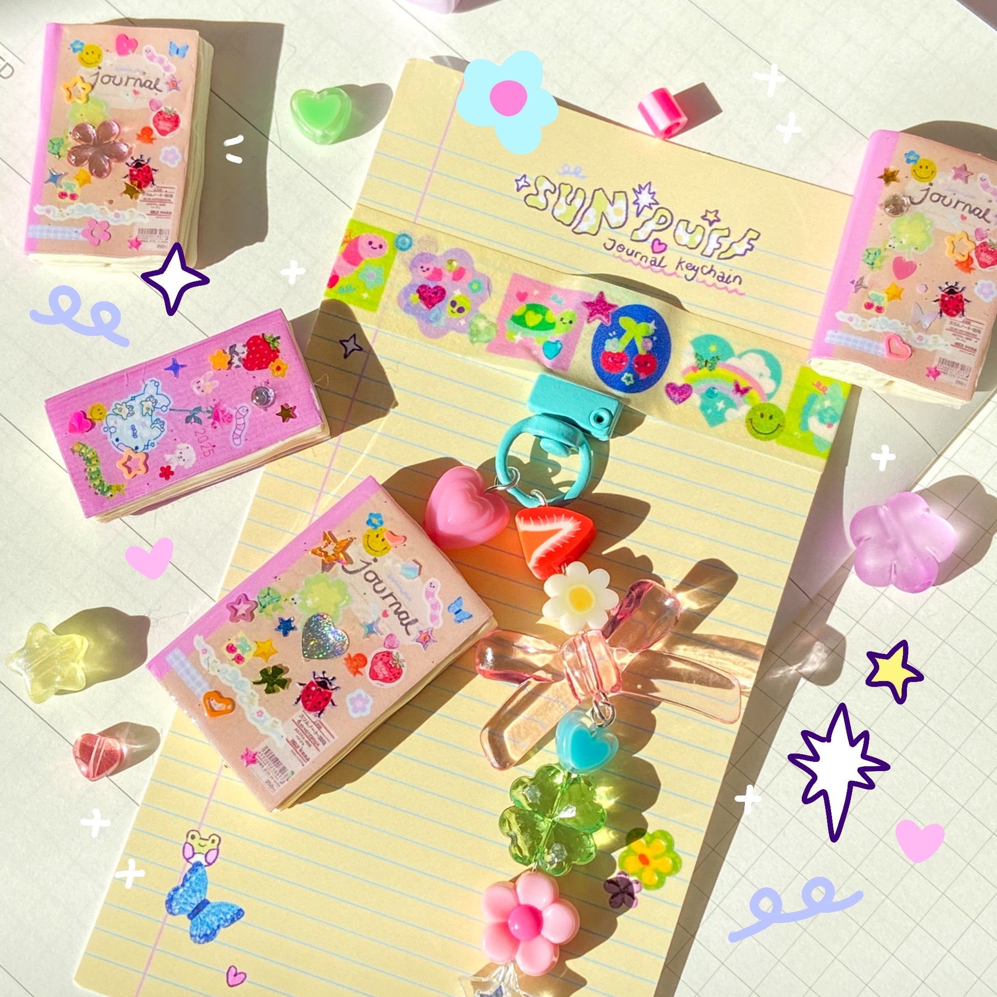Clay journal bead handmade and paired with a mix of glass and acrylic beads. Lobster clasp keychain, colour and bead mixture will vary.