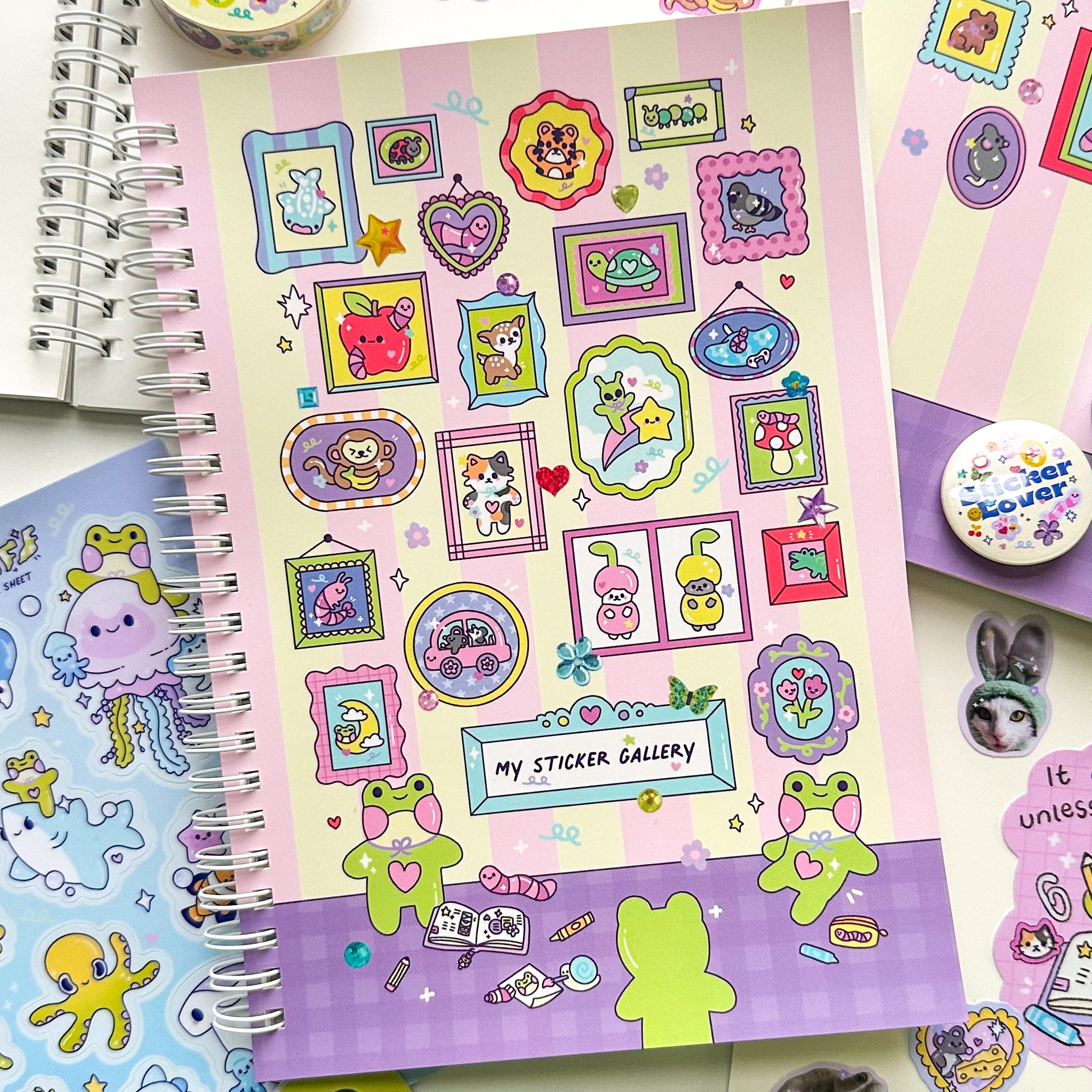 A5 reusable sticker book! 50 pages of wax paper so you can store and display your stickers with easy peeling. Plastic covering for protection, front and back design. White spiral fixing.