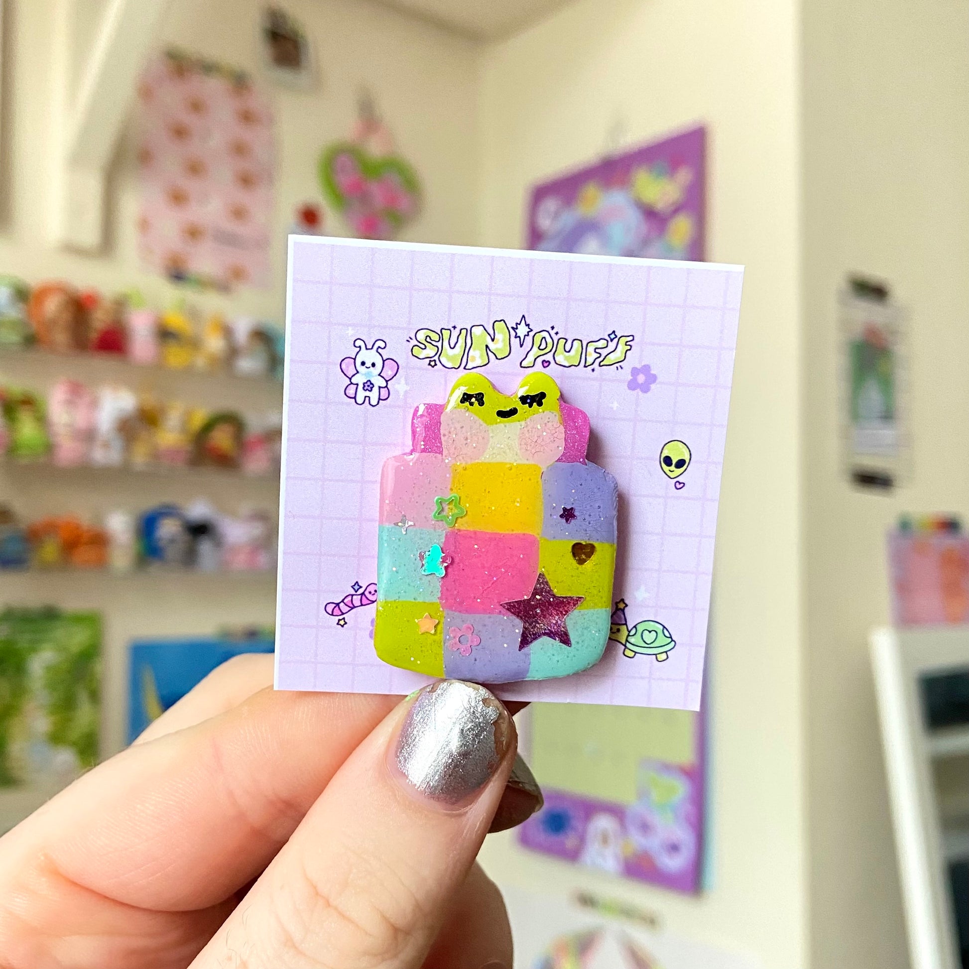 Clay magnet, hand painted with glitter resin details.