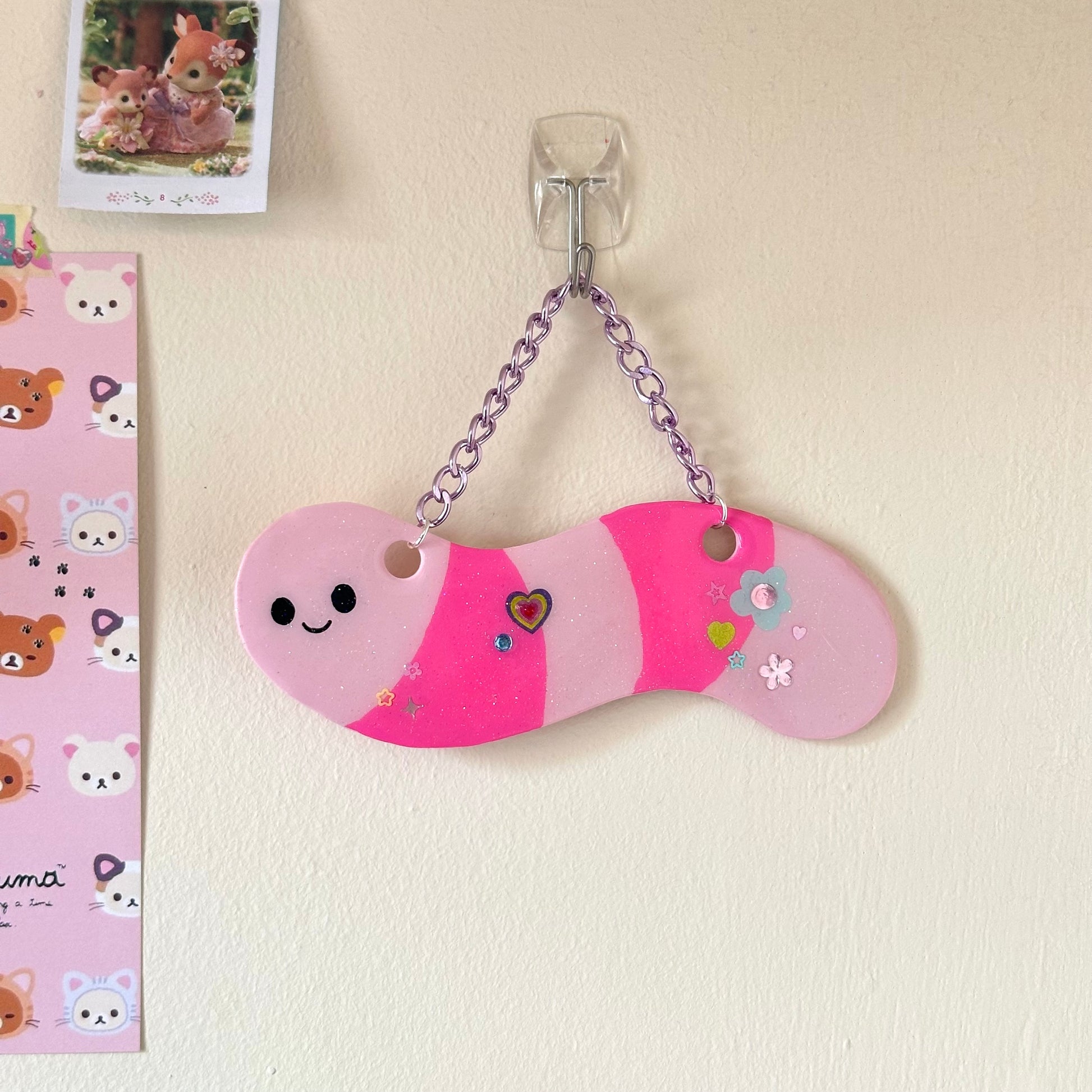 One off clay wall hanging, Lightweight due to clay, perfect for command strip hooks, peg boards or push pins. Hung by purple metal chain. One sided design.